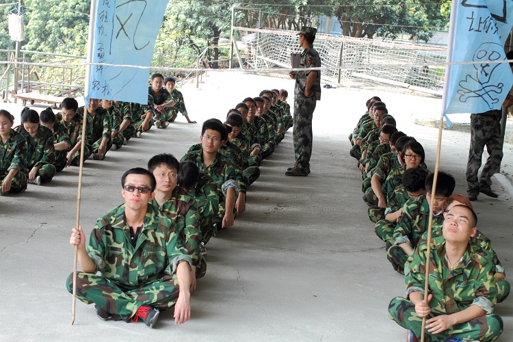 (一)連隊建設(shè)組織 PK。公司全體員工分為6個連隊進行PK,內(nèi)容包括隊名、隊旗、口號、士氣等。通過每個連隊各自成員的集思廣益、群策群力,所有連隊都取得了彼此和教官認可的成績,為以下各項拓展活動的開展奠定了基礎(chǔ)。