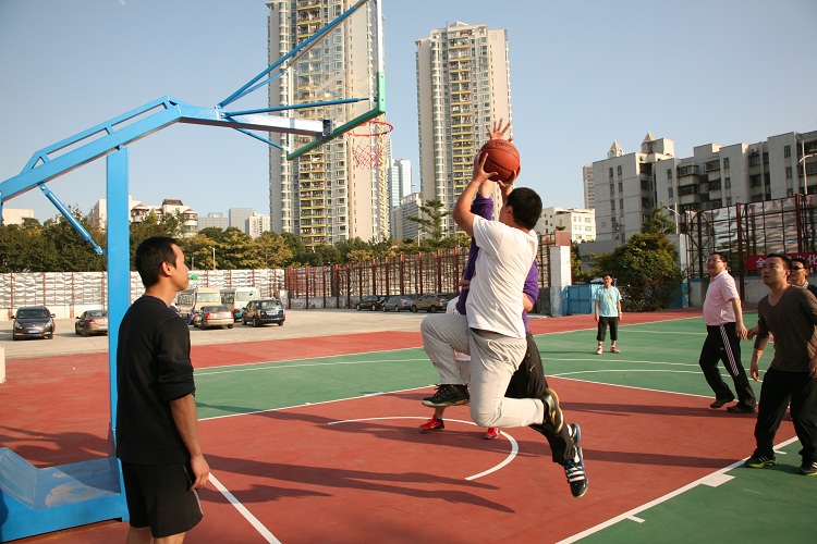 下午2時(shí),來自公司各部門、龍華分公司、天鵝公司、監(jiān)理公司組成的籃球、女子乒乓球隊(duì)員、啦啦隊(duì)列隊(duì)進(jìn)入籃球場。在公司領(lǐng)導(dǎo)簡短致詞和裁判長宣布比賽規(guī)則后,丁曉東董事長做迎新年講話并宣布比賽開始,正式拉開賽事帷幕。各路隊(duì)員分成A、B兩個(gè)賽區(qū)展開激烈的循環(huán)賽。A區(qū)首場比賽在“精英隊(duì)”(辦公室隊(duì))與天才隊(duì)(天鵝公司、財(cái)務(wù)部聯(lián)隊(duì))之間展開。“精英隊(duì)”在3名隊(duì)員年齡大的情況下,有著籃球功底的鄭月英展示出一名后衛(wèi)的實(shí)力,接球、分球、組織進(jìn)攻步步到位,隊(duì)員拼搶積極,配合默契,比賽一開始讓“天才隊(duì)”難以接招,但“天才隊(duì)”不甘示弱,雙方比分交替上升,難分伯仲。由于“精英隊(duì)”缺少替補(bǔ),隊(duì)員體力不支,最終敗下陣來,晉級(jí)機(jī)會(huì)渺茫。最為激烈的是冠軍爭奪戰(zhàn)。A、B組兩隊(duì)勁旅在決賽中相遇,丁曉東帶領(lǐng)的“成功隊(duì)”(成本、工程管理部聯(lián)隊(duì)),對陣巫石明帶領(lǐng)的“烏龍隊(duì)”(龍華分公司隊(duì)),稍占上風(fēng)的“烏龍隊(duì)”一路領(lǐng)先,“成功隊(duì)”緊跟其后,在最后關(guān)頭,“成功隊(duì)”采取盯人戰(zhàn)術(shù),搶斷反攻,把比分追成10比10平局。整場比賽15分鐘時(shí)間很快結(jié)束,當(dāng)比賽離終場還剩下最后十幾秒鐘時(shí),“成功隊(duì)”隊(duì)員不幸折將離場,比賽不得不采取投籃決勝負(fù)的方式,結(jié)果“成功隊(duì)”惜敗,屈居亞軍。