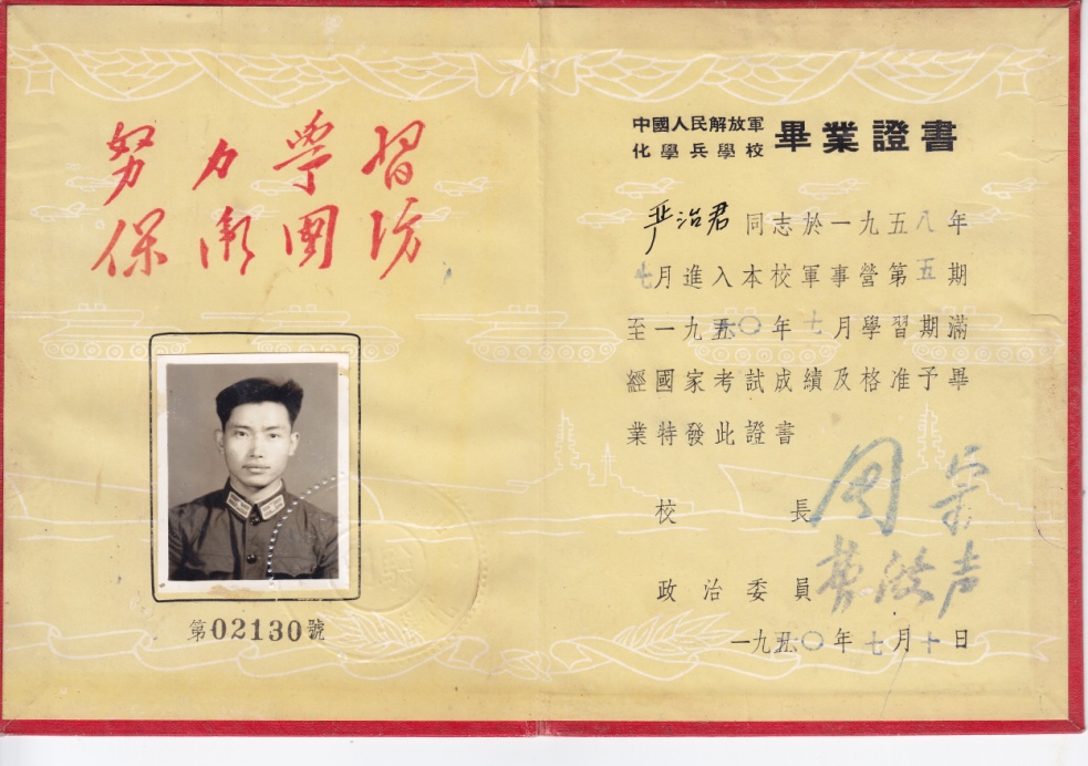 1950年10月,抗美援朝急需作戰(zhàn)指揮員,林華棟被派往華北軍政大學(xué)擔(dān)任為抗美援朝部隊(duì)培養(yǎng)干部的任務(wù),其中包括了我的父親嚴(yán)治君。那時(shí),我父親17歲時(shí),還是四川宜賓老家一個(gè)平頭百姓的小學(xué)徒工,在四川解放時(shí)參加劉鄧大軍后走上“保和平,為祖國(guó),就是保家鄉(xiāng)”的朝鮮戰(zhàn)場(chǎng),經(jīng)受了血與火的生死洗禮,在戰(zhàn)場(chǎng)上榮獲三等功;貒(guó)后,父親被安排到解放軍防化學(xué)院進(jìn)修學(xué)習(xí),成為了一名軍隊(duì)大學(xué)生。他永遠(yuǎn)感激共產(chǎn)黨培養(yǎng)了他,教育了他,讓他成為一個(gè)可以為國(guó)家做出貢獻(xiàn)之才。他時(shí)常掛在嘴邊的話:“我的戰(zhàn)友們,都犧牲在朝鮮戰(zhàn)場(chǎng)上;我的同學(xué)們都犧牲在越南戰(zhàn)場(chǎng)上。比起在戰(zhàn)場(chǎng)上犧牲了的千千萬(wàn)萬(wàn)個(gè)革命烈士,我已經(jīng)多活了很多年,我非常知足!松怨耪l(shuí)無(wú)死,留取丹心照汗青’”。