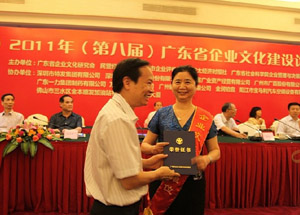 集團位列“2010年度廣東省企業(yè)文化建設(shè)十佳單位”首位,劉愛群、林嬋波分獲“2010年度廣東省企業(yè)文化建設(shè)十佳先進(jìn)個人、企業(yè)文化管理先進(jìn)個人”稱號