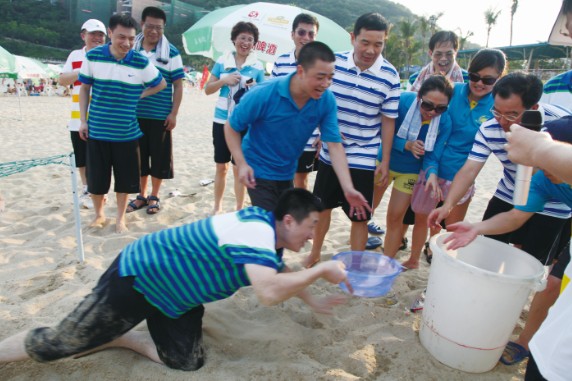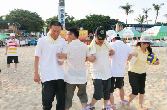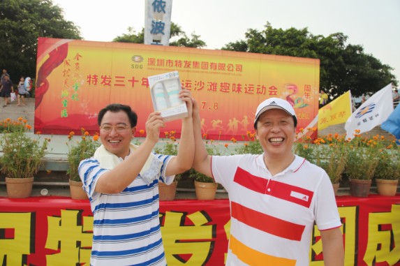 7月8日,特發(fā)小梅沙旅游中心裝扮一新,司旗彩旗迎風(fēng)飄揚,五彩鮮花競相綻放,“熱烈慶祝特發(fā)集團(tuán)成立30周年”等祝福語在小梅沙酒店門口的LED大屏幕上不停滾動,到處彌漫著祥和歡樂的氣氛。下午4:30,特發(fā)30年迎大運沙灘趣味運動會在美麗的小梅沙海灘拉開帷幕。集團(tuán)總部全體員工、全資控股企業(yè)班子成員及財務(wù)負(fù)責(zé)人、參股企業(yè)特發(fā)方產(chǎn)權(quán)代表參加運動會。運動會安排了沙灘排球、步調(diào)一致和障礙接力3個項目;根據(jù)人數(shù)對等的原則,運動員分成4支參賽隊伍,即:由集團(tuán)公司領(lǐng)導(dǎo)和部門領(lǐng)導(dǎo)組成的公司一隊;由集團(tuán)公司各部門員工組成的公司二隊;由特發(fā)信息、小梅沙旅游中心、特發(fā)物業(yè)3家企業(yè)組成的企業(yè)一隊;由特力集團(tuán)、香蜜湖度假村、黎明集團(tuán)、高爾夫、華麗公司、華明公司組成的企業(yè)二隊。
