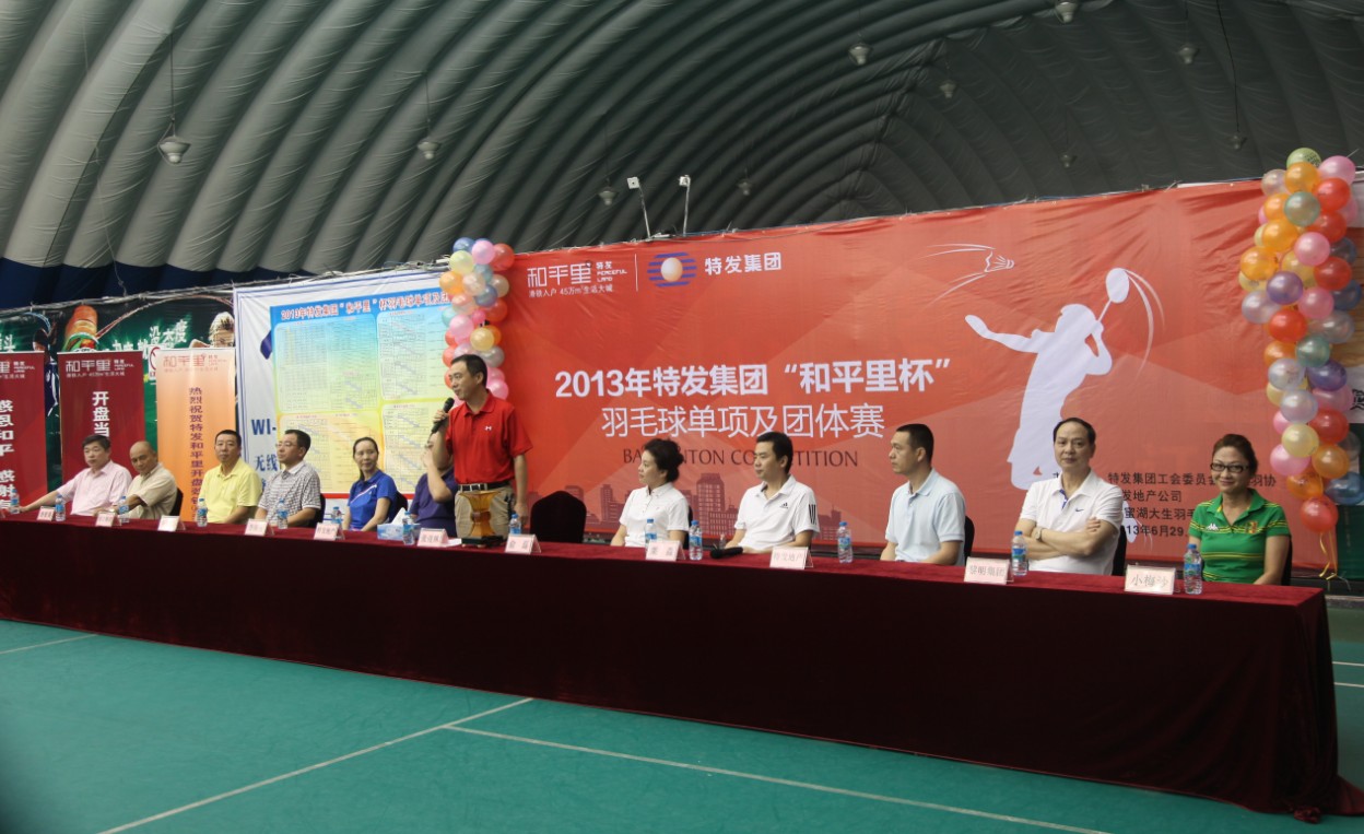 乘特發(fā)“和平里”項(xiàng)目成功推售之機(jī),為進(jìn)一步宣傳和推介“和平里”,豐富員工業(yè)余體育文化生活,集團(tuán)工委會(huì)、特發(fā)羽協(xié)主辦、地產(chǎn)公司承辦的2013年特發(fā)“和平里”杯羽毛球單項(xiàng)及團(tuán)體賽于6月29至30日在大生體育場(chǎng)舉行。集團(tuán)總部和全資控股企業(yè)組成7支代表隊(duì)共53對(duì)選手、106名運(yùn)動(dòng)員參加比賽。