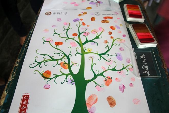 在參觀了整個(gè)小學(xué)的基礎(chǔ)設(shè)施后,大家參加了學(xué)校的升旗儀式,少先隊(duì)員為大家佩戴了紅領(lǐng)巾;大家還一起“按拇指印,共筑希望樹(shù)”,家重溫少兒時(shí)的美好時(shí)光。