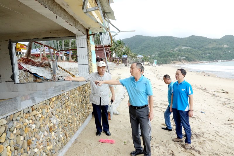 特發(fā)集團張俊林董事長、高天亮總經(jīng)理、張暾監(jiān)事會主席、陳陽升財務總監(jiān)、桂自強副總經(jīng)理等先后察看了小梅沙酒店、小梅沙度假村的受災情況,當看到小梅沙沙灘堤岸被沖垮,酒店大量樹木倒塌,房屋建筑嚴重受損,張俊林董事長表示非常痛心,沒想到災害如此嚴重。同時對災后重建及恢復生產(chǎn)工作提出三點要求:一是要根據(jù)受災情況,盡快摸清實際損失,并制定災后重建、恢復生產(chǎn)工作方案;二是要嚴防災后次生災害的發(fā)生,做好安全防護措施,特別是目前小梅沙度假村經(jīng)臺風破壞后已處于開敞狀態(tài),要注意游客的生命健康安全;三是小梅沙旅游災后重建工作要充分結(jié)合小梅沙二次開發(fā)整體安排,統(tǒng)籌協(xié)調(diào),做好沙灘修復工作。