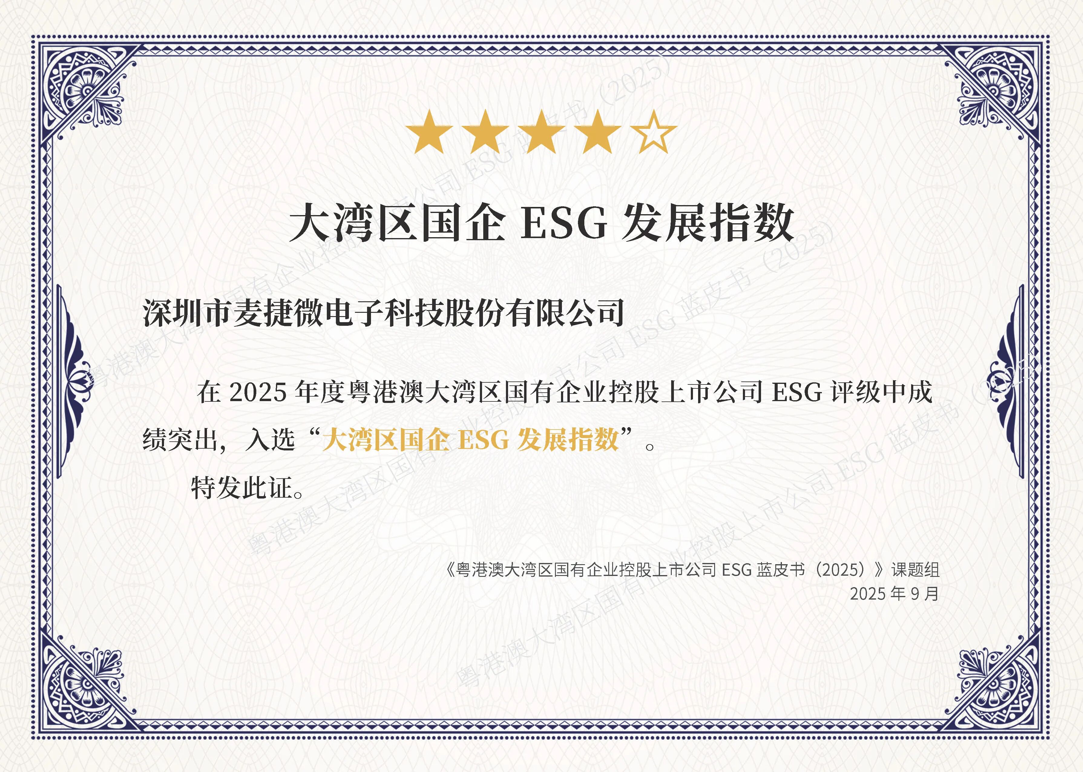此外,在本次論壇發(fā)布的多項權威指數(shù)中,特發(fā)集團旗下麥捷科技憑借在ESG領域的優(yōu)秀表現(xiàn),首次入選“大灣區(qū)國企ESG發(fā)展指數(shù)”榜單。本次入選,不僅是對麥捷科技ESG治理、社會價值創(chuàng)造、風險管理等工作的高度認可,更是對麥捷科技踐行可持續(xù)發(fā)展理念的充分肯定。