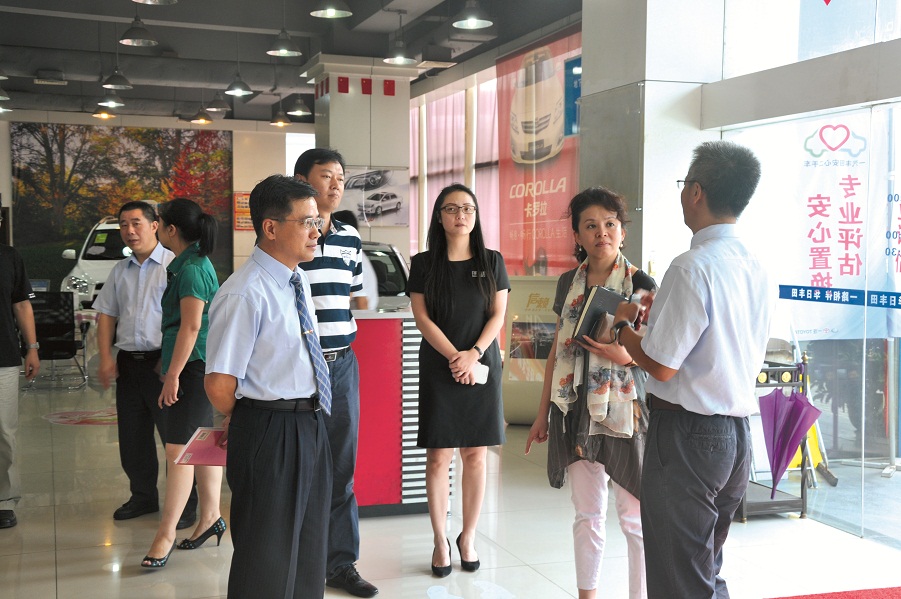 俞總一行首先前往華日公司經營“最前沿”——汽車銷售展廳和售后服務接待大廳,與接待人員進行親切交談,了解車輛的銷售及售后服務情況,隨后深入維修車間進行走訪,對工人在炎熱的車間工作表示親切的慰問,并叮囑華日領導一定要高度重視安全生產,注意車間的工作環(huán)境,做好夏季防暑降溫工作。